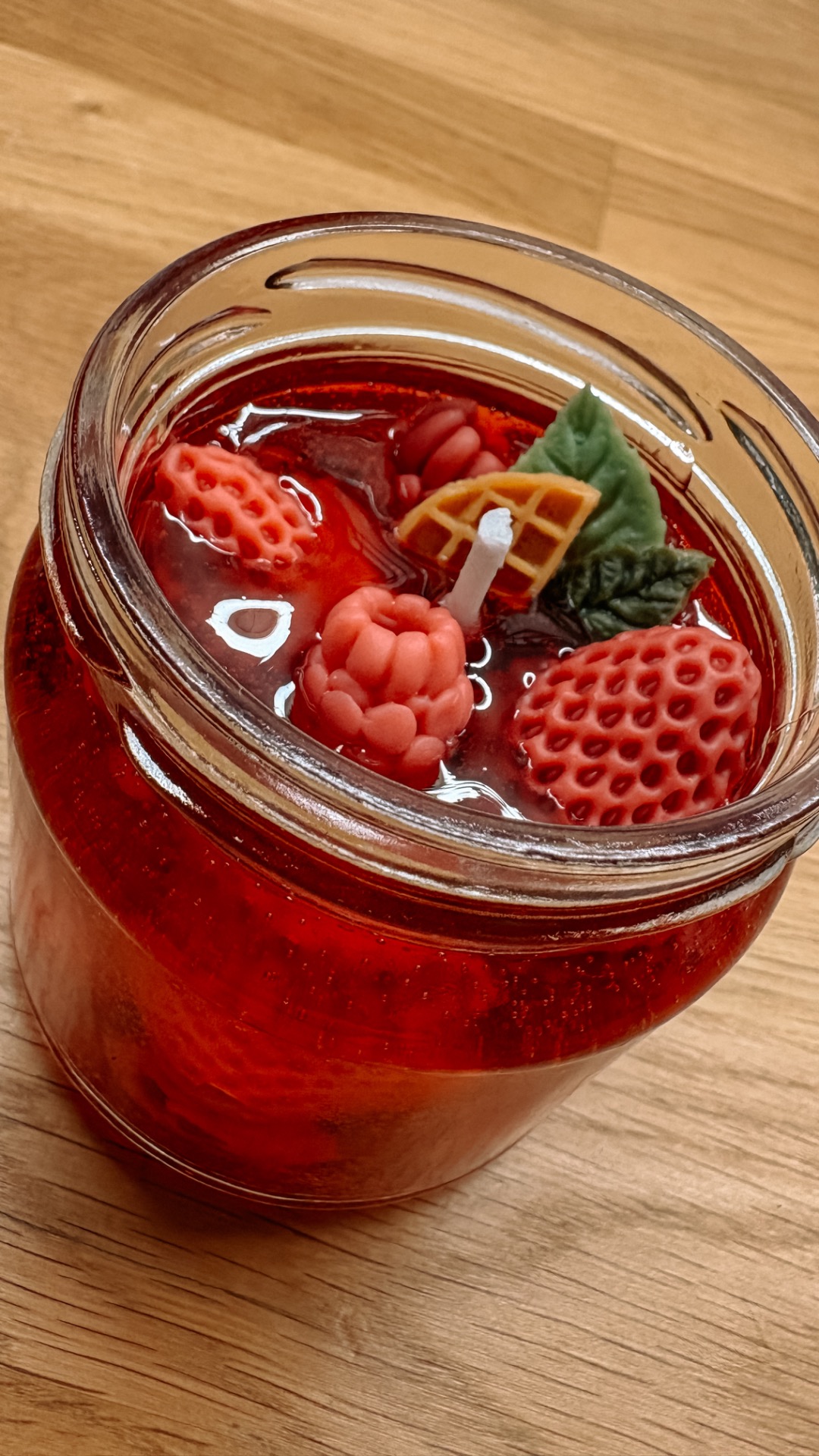 Málna és krém illatú, üveg pohárban, kb.12cm